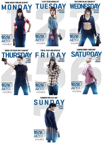 영화의 주인공들은 월요일부터 일요일까지 이름 붙여진 7명의 자매예요. 이들은 매일 한 명씩 돌아가며 '카렌 셋맨'이라는 한 사람의 삶을 살아가요. 예를 들어, 월요일에는 '먼데이'가, 화요일에는 '튜스데이'가 카렌 셋맨으로 살아가는 거죠.